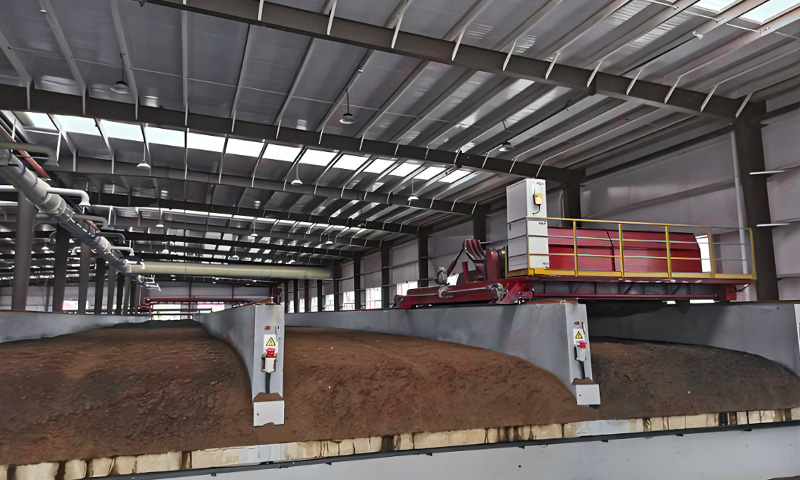 a.槽式好氧發(fā)酵:這是目前處理豬糞比較有效的方法,也適合豬糞有機肥商品化生產(chǎn),有利于標準化生產(chǎn)。它利用生物學特性結合機械化技術,利用自然微生物或接種微生物將豬糞完全腐熟并將有機物轉化為有機質(zhì)、二氧化碳與水,這種方法發(fā)酵時間短,一般15天左右就能使豬糞完全發(fā)酵腐熟,而且易實現(xiàn)工廠化規(guī)模生產(chǎn),不受天氣季節(jié)影響,對環(huán)境造成的污染小,有利于豬糞有機肥的商品化生產(chǎn)。根據(jù)設備不同,發(fā)酵槽的寬度一般為3-20m,深度一般為0.8-1.5m,長度在50~100 m,可據(jù)實際情況設計。